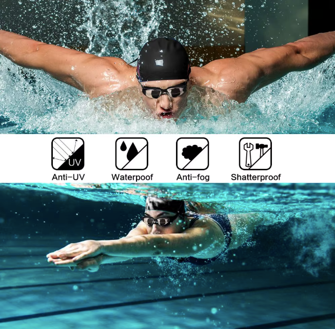 Nossos óculos são feitos com lentes de policarbonato resistentes e tecnologia anti-fog UV, garantindo proteção e conforto mesmo nos treinos mais intensos.